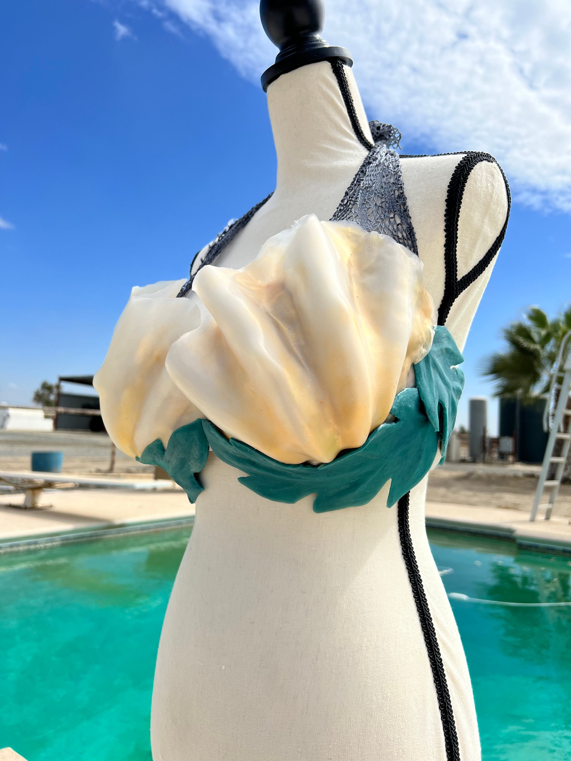 This listing is for a full silicone top featuring fluted clam shells and the oak leaves or smooth palm leaves. This style can currently only acomidate bra sizes C-G cups.